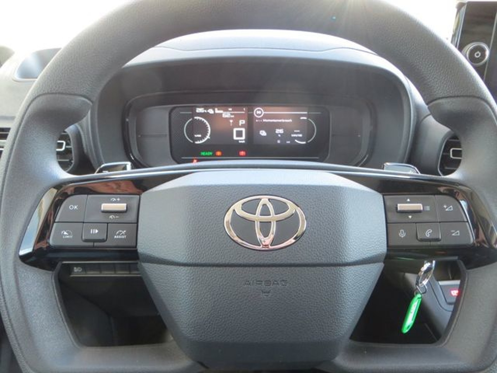 Airbag Fahrer-/Beifahrerseite, Audiobedienung am Lenkrad, Audiosystem: Radio, Außenspiegel elektr. verstell- und heizbar, Beifahrerdoppelsitz, Bi-LED-Scheinwerfer, Bremsassistent, DAB-Tuner (Radioempfang digital), Einparkhilfe hinten, Elektr. Bremskraftverteilung, Elektromotor 100 kW, Fahrassistenz-System: Berganfahrkontrolle (HAC), Fahrassistenz-System: Fernlichtassistent (Abblendautomatik Fahrlicht, AHB), Fahrassistenz-System: Pre-Collision-System (PCS), Fahrassistenz-System: Sicherheitssystem Toyota Connect mit automatischem Notruf (eCall), Freisprechanlage mit Audiostummschaltung, Frontscheibe Verbundglas, Getriebe für Elektrofahrzeug, Heckflügeltüren ohne Verglasung, HV-Batterie 50 kWh, Karosserie/Aufbau: Kasten, Ladekabel mit Schukostecker (Mode 2), Ladekabel mit Typ 2-Stecker (Mode 3), Laderaumtrennwand, Lendenwirbelstütze Sitz vorn links, Modellpflege, Parkbremse elektrisch (EPB), Radstand 2785 mm, Reifendruck-Kontrollsystem, Schiebetür Fahrgast-/Laderaum rechts, Seitenairbag vorn, Seitenschutzleisten, Sitz vorn links höhenverstellbar, Steckdose (12V-Anschluß) Koffer-/Laderaum, Toyota Smart Cargo