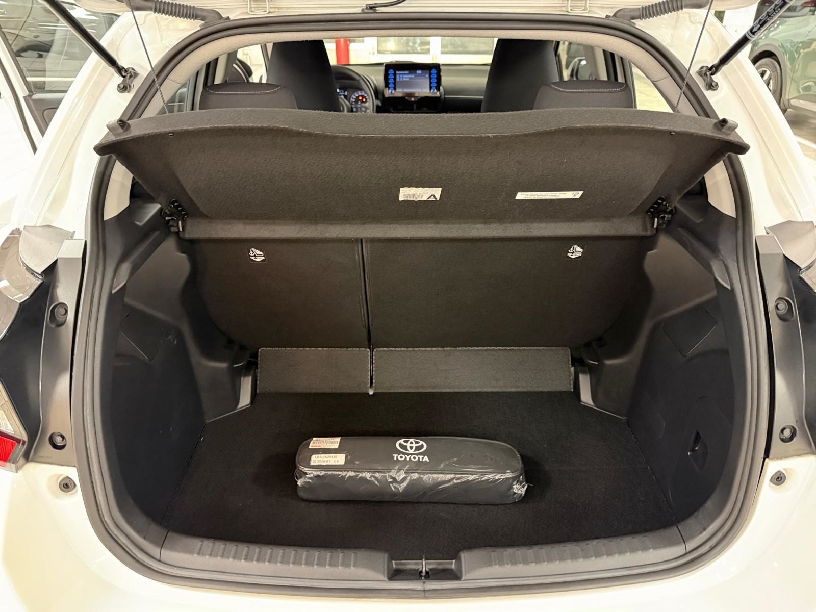 3. Bremsleuchte, 4 Lautsprecher, Airbag Beifahrerseite abschaltbar, Airbag Fahrer-/Beifahrerseite, Aktive Kopfstützen vorn, Audiobedienung am Lenkrad, Audiosystem: Multimedia Toyota Touch, Autom. Begleitfunktion der Beleuchtung (Follow me home, FMH), Außenspiegel elektr. verstell- und heizbar, Blinkleuchte in Außenspiegel integriert, Dachantenne, Elektr. Bremskraftverteilung, Fahrassistenz-System: Berganfahrkontrolle (HAC), Fahrassistenz-System: Eco-Anzeige für verbrauchsoptimiertes Fahren, Fahrassistenz-System: Müdigkeitserkennungs-Sensor, Fahrassistenz-System: Sicherheitssystem Toyota Connect mit automatischem Notruf (eCall), Gepäckraumabdeckung / Rollo, Heckspoiler schwarz, Innenraumfilter: Staub- und Pollenfilter mit Aktivkohlefilter, Isofix-Kindersitz-System, Karosserie: 5-türig, Klimaautomatik, Kopfstützen vorn und hinten verstellbar, Lenksäule (Lenkrad) verstellbar, Leseleuchte, Motor 1, 5 Ltr. - 68 kW (System: 85 kW) Hybrid, Multimedia Display (7, 0 Zoll), Navigationssystem (Touch & Go), Parkbremse elektrisch (EPB), Reifen-Reparaturkit, Reifendruck-Kontrollsystem, Rückfahrkamera, Rücksitz geteilt, Rücksitz klappbar, Schadstoffarm nach Abgasnorm Euro 6d, Schalt-/Wählhebelgriff Leder, Scheibenwischer mit Intervallschaltung, Seitenairbag hinten, Seitenairbag vorn, Service-System: MyT-Connected Services, Sitz vorn links höhenverstellbar, Sitzheizung vorn, Sonnenblenden mit Spiegel (beleuchtet), Toyota Safety Sense, Warnanlage für Sicherheitsgurte hinten, Warnanlage für Sicherheitsgurte vorn